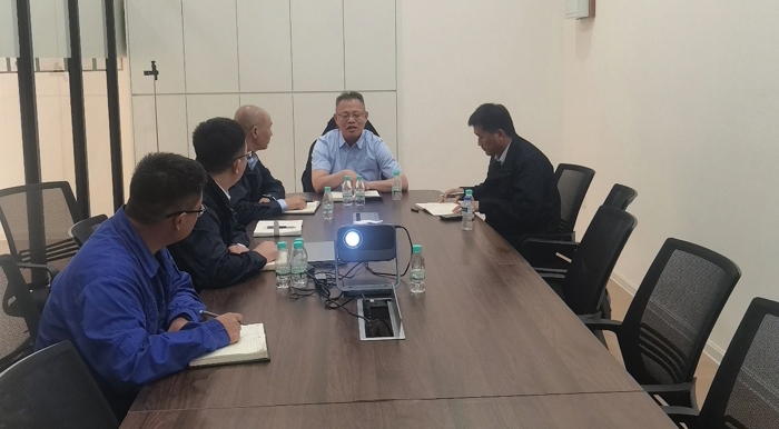 在项目现场,董事长与一线职工就施工工艺、安全质量管理、地质情况、设备情况等方面进行沟通交流。对项目面临的问题提出了指导性的意见,使项目管理团队更加明确了后续工作的努力方向。董事长还十分关怀一线职工在海外的生活状况,亲切地话语使项目职工备受鼓舞。