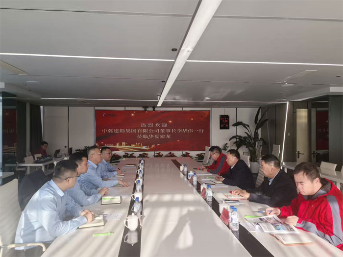 北京华夏建龙矿业科技有限公司董事长苑占永对李华伟董事长一行的到访表示热烈欢迎。李华伟董事长首先对苑占永董事长的热情接待表示了感谢,并介绍了公司自1953年建院至今的发展历程、未来发展规划。随后,共同观看了双方发展历程的视频简介。 在会谈中,苑占永董事长对我公司的技术实力与发展成果非常赞赏,并表示双方应加强合作,在技术创新与未来发展中携手共进,互利共赢。李华伟董事长表示中冀建勘集团将发挥自身优势,为北京建龙矿业相关项目提供涵盖勘察、设计、施工、监测等系统性技术支撑,全力推动双方在矿山领域的战略合作走深走实,实现共同发展。