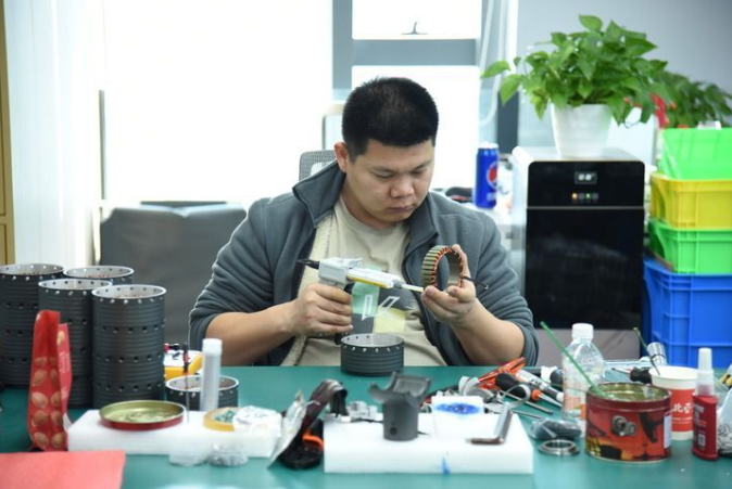 在深圳市众擎机器人科技有限公司,一位工作人员正调试人形机器人部件(1月21日摄)。新华社记者洪泽华摄