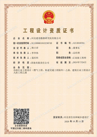 公司于2020年10月27日取得了建筑行业(人防工程)工程设计乙级资质证书,可承担(1)建设规模在1000万元以下的各级人防工程设计项目;(2)建设规模在2000万元以下的医疗救护工程、防空专业队工程、人员掩蔽工程、人防配套工程设计项目。