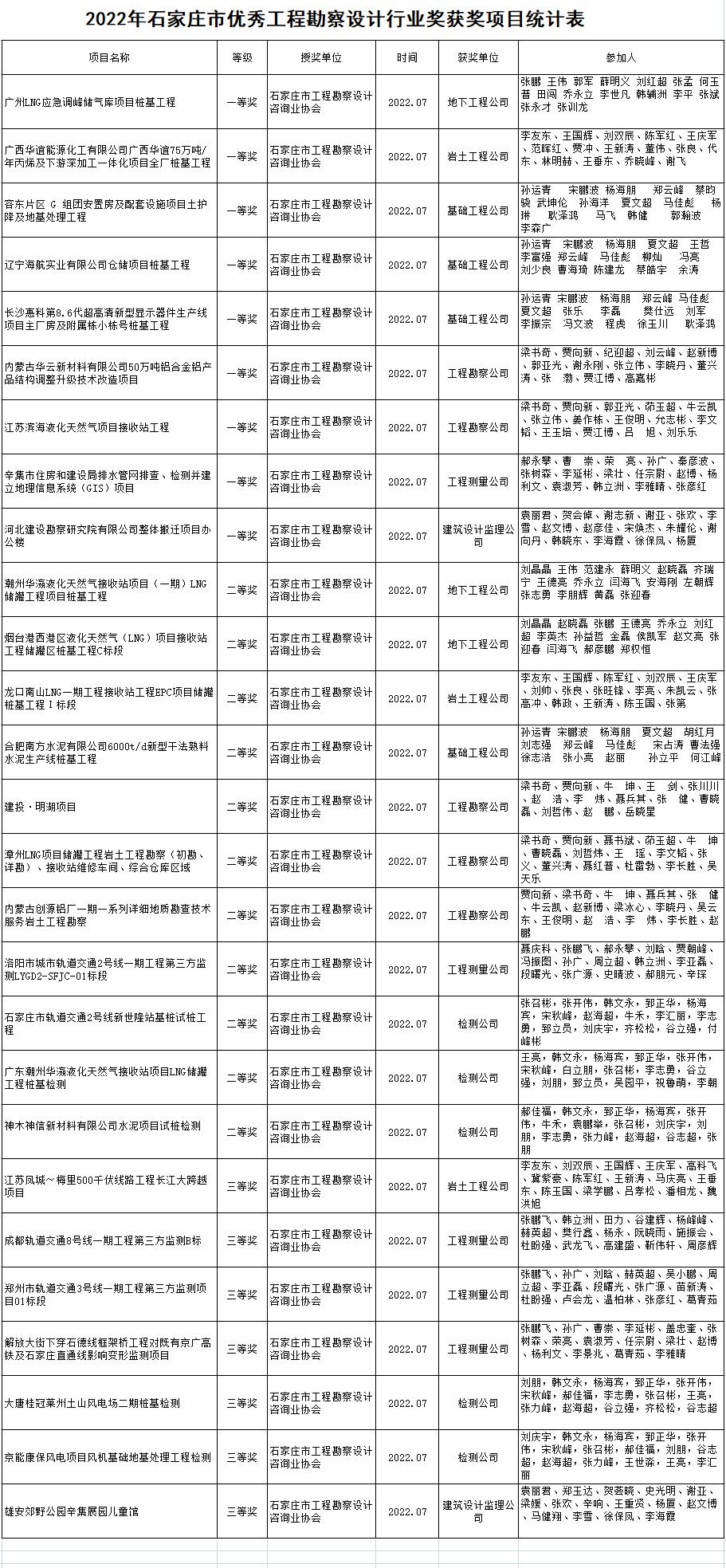 近日,石家庄市工程勘察设计咨询业协会下发文件《关于公布2022年度优秀工程勘察设计行业奖评选结果的通知》(石设协字[2022]7号),我公司被授予“创优先进单位”称号,公司申报的9个项目获评一等奖,11个项目获评二等奖,7个项目获评三等奖。