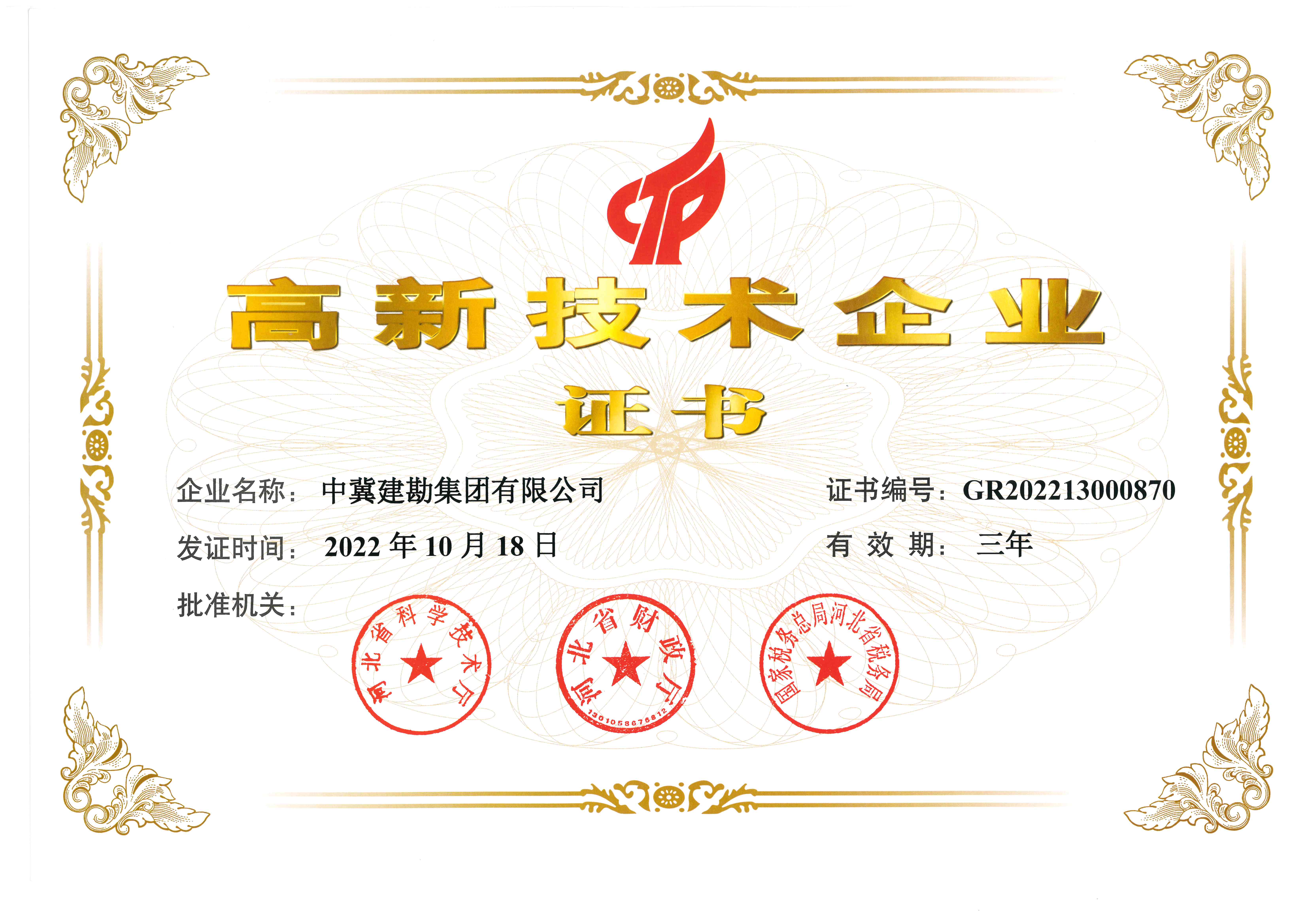 依据《全国高新技术企业认定管理工作领导小组办公室对我省2022年高新技术企业备案的复函》,河北省高新技术企业认定管理工作领导小组下发文件《关于公布河北省2022年高新技术企业的通知》(冀高认〔2023〕1号),我公司以出色的业绩和优秀的组织能力,第三次通过国家高新技术企业认定。