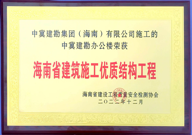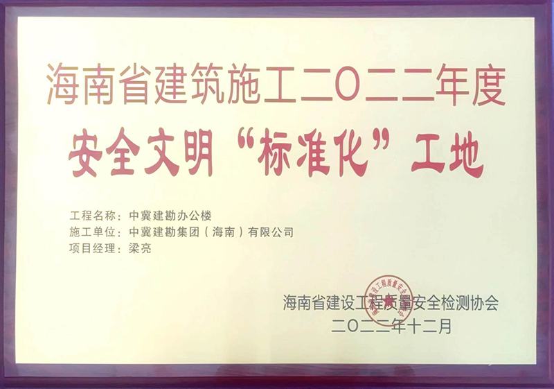 近日,海南省建设工程质量安全检测协会发布消息,经过审核申报材料、查验施工现场、专家综合评议,中冀建勘集团(海南)有限公司建筑工程项目“中冀建勘办公楼”,被评定为海南省建筑施工优质结构工程、海南省建筑施工二零二二年度安全文明“标准化”工地。